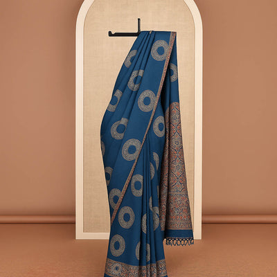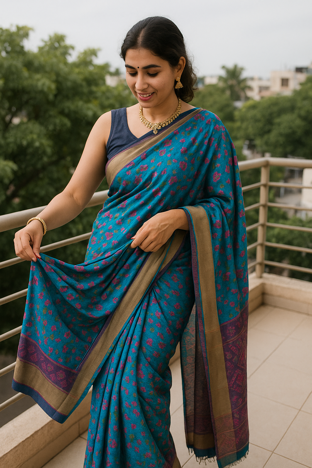 Firozi Printed Cotton Silk Saree with Rani Blouse