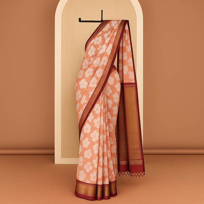 Rani Pink Chanderi Cotton Saree with Traditional Print